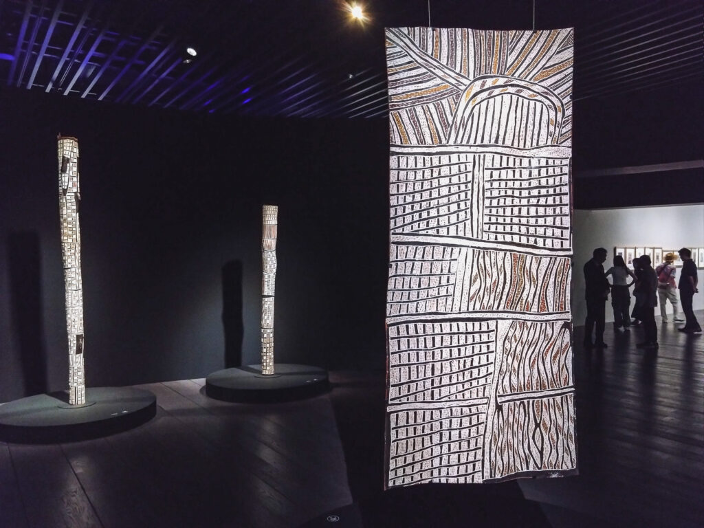 事前に少しだけ展示について調べてみました。アボリジナルアートは、単なる絵画ではなく、歴史や物語、そして大地そのものを表現しているのだと知り、静かな高揚感を感じます。