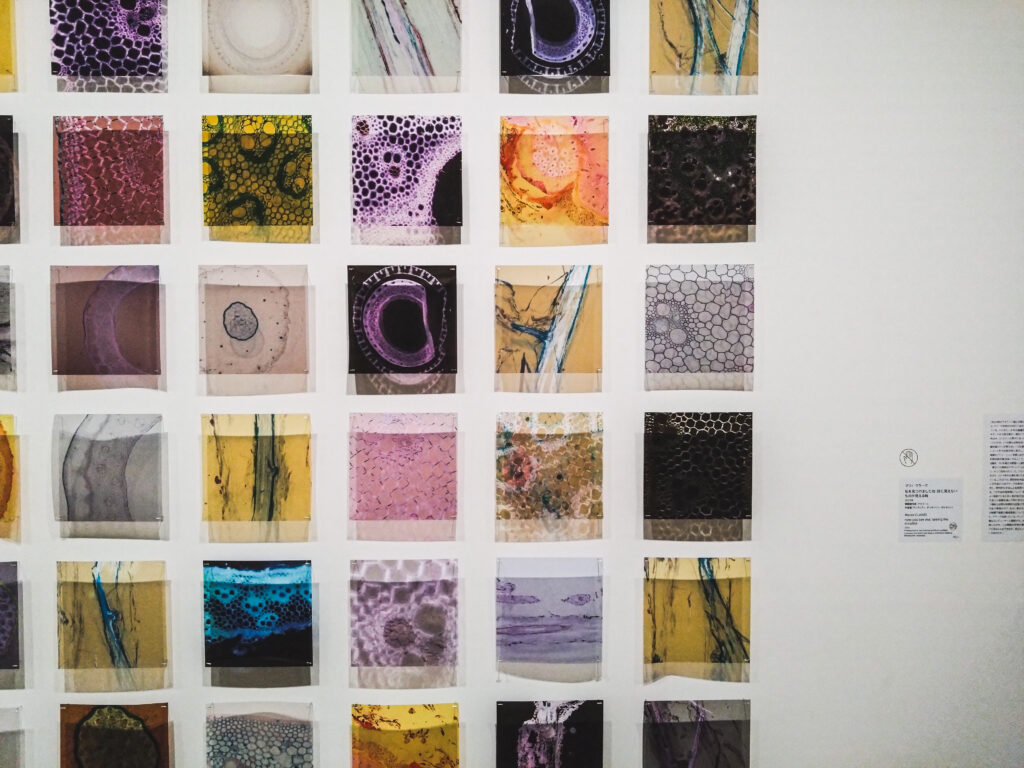 壁一面に飾られた、鮮やかな色彩の植物の細胞の写真は圧巻でした。
