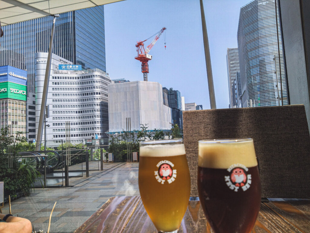 美術館を出て、東京駅前のカフェで休憩することにしました。窓の外には丸の内の街並みが広がっています。